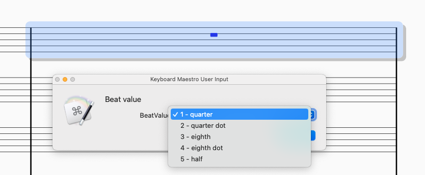 So I built a Keyboard Maestro macro to take care of it. It asks for the details, formats everything exactly the way I like it, and enters it like a well-trained assistant — no Manuscript Language, no Sibelius plugins, just fast, clean keystrokes.