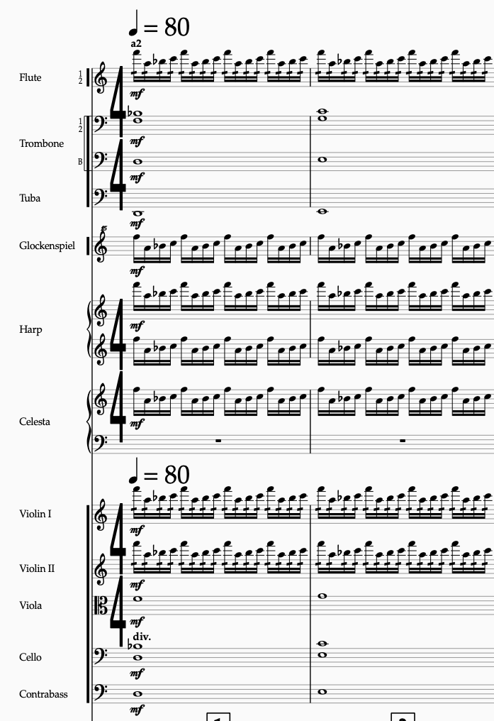 In quiet sections with long string chords and no clear rhythm from the orchestra or percussion, I often use alternating harp harmonics to create a gentle sense of forward motion. Think of it as a soft backbeat: a single chord tone on beat 1, followed by its harmonic counterpart on beat 2. It’s subtle, but it keeps the music breathing. Depending on how much sparkle the moment can handle, you can double the pattern with vibraphone or crotales for an extra hint of light.